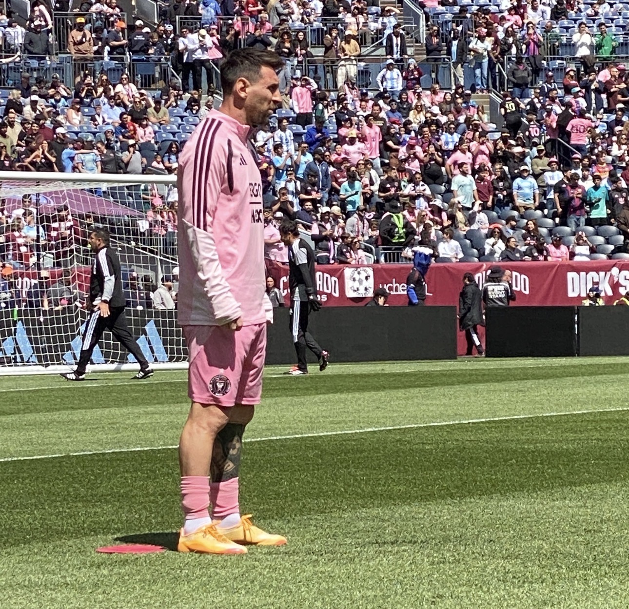 PRIMERA FOTO EN EL EMPOWER FIELD| Un Messi abrigado pisa el campo antes del juego…