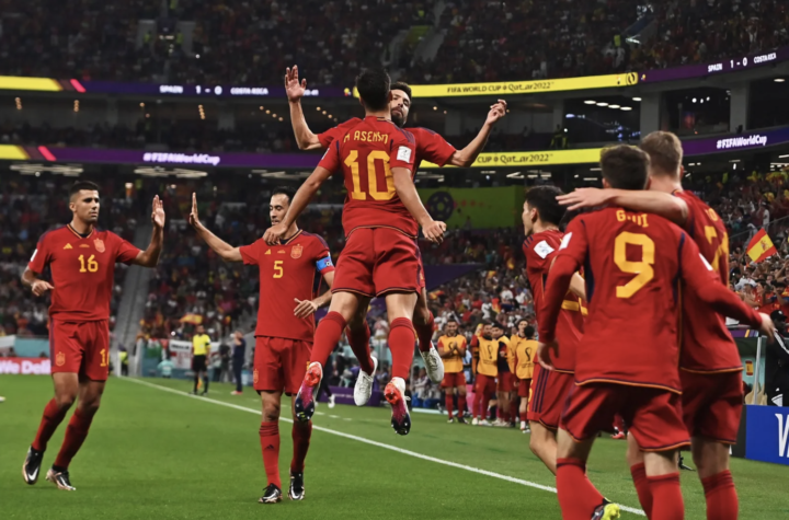 ARRANQUE HISTÓRICO| Jugadores de España celebran un gol de Marco Asensio. (Foto /EFE) MAYOR GOLEADA DE LOS ROJOS EN UN...