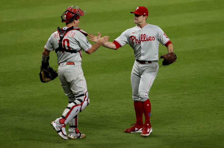 ALVARADO CELEBRA EL TRIUNFO Houston/ Agencia Efe José Alvarado, lanzador venezolano de los Filis de Filadelfia, se mostró este viernes...