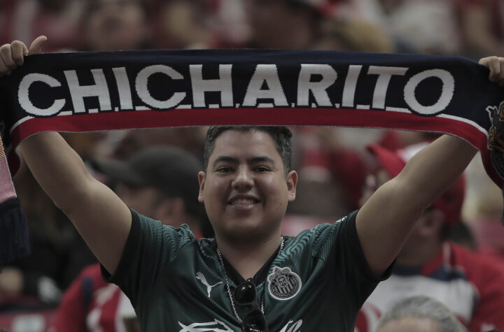 EN ESTADIO AKRON EN GUADALAJARA| Un joven muestra una bufanda marcada con el apodo del delantero Javier "Chicharito" Hernández, durante...
