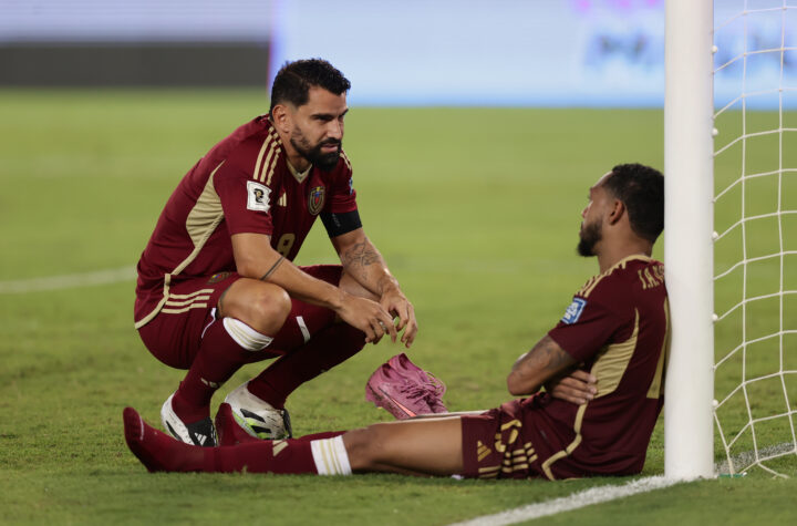 DOS JUGADORES DECEPCIONADOS| Tomás Rincón y José Martínez de Venezuela al final de un partido por las eliminatorias a la...