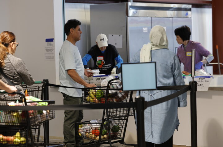 EN ALAMEDA, CALIFORNIA| Clientes esperan en fila para recoger alimentos con proteína en las nuevas instalaciones del Banco de Alimentos...