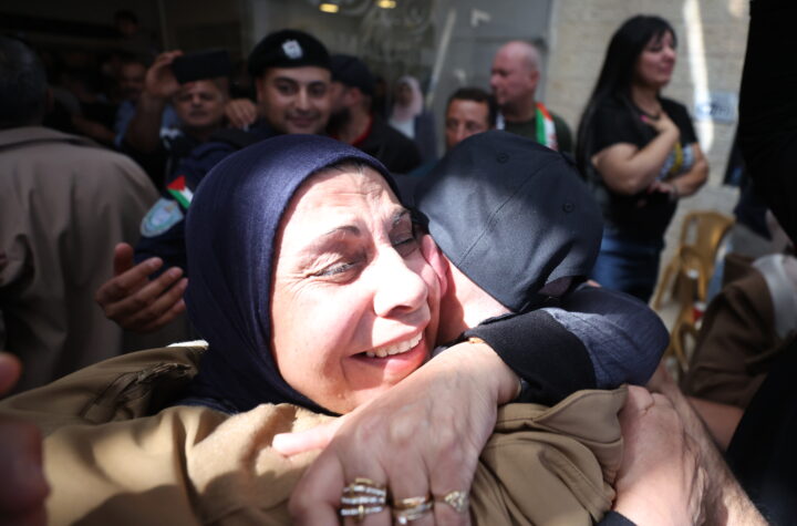 LLEGA A RAMALA, CISJORDANIA| Un palestino liberado es abrazado por un familiar. Como parte del acuerdo de alto el fuego...