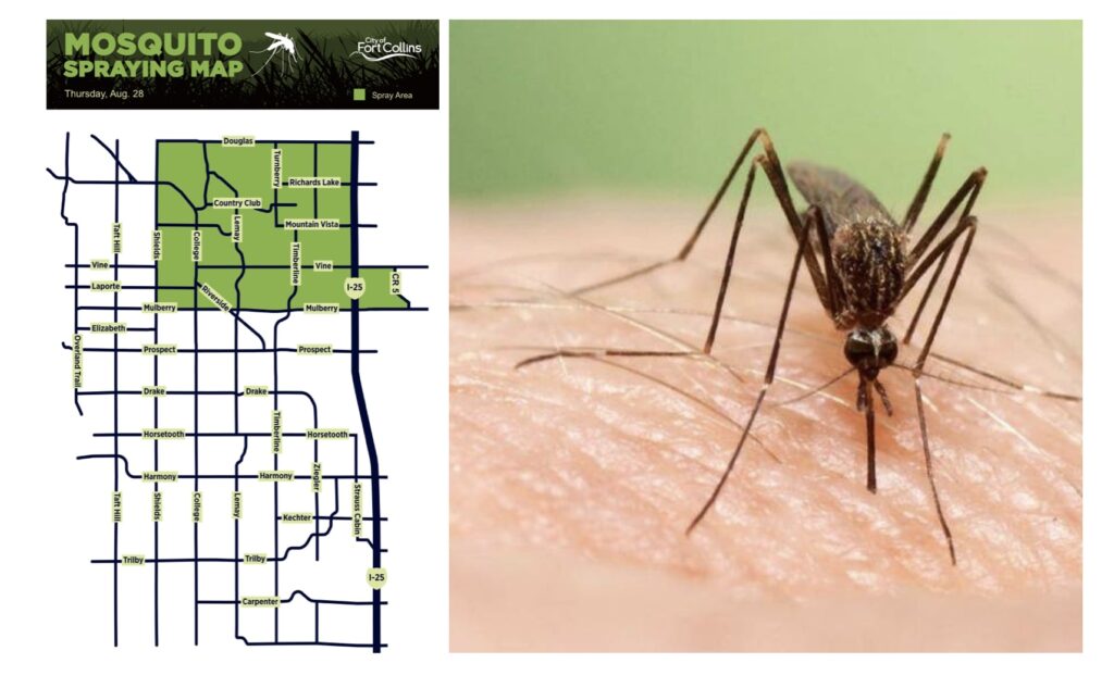 Ante esta situación, la ciudad de Fort Collins, en coordinación con el Departamento de Salud y Medio Ambiente del condado de Larimer, realizará una fumigación masiva el jueves 28 de agosto en el noreste de la ciudad y zonas aledañas no incorporadas. El proceso se hará mediante camiones nebulizadores que aplicarán un producto a base de permetrina desde el anochecer hasta aproximadamente las dos de la madrugada.