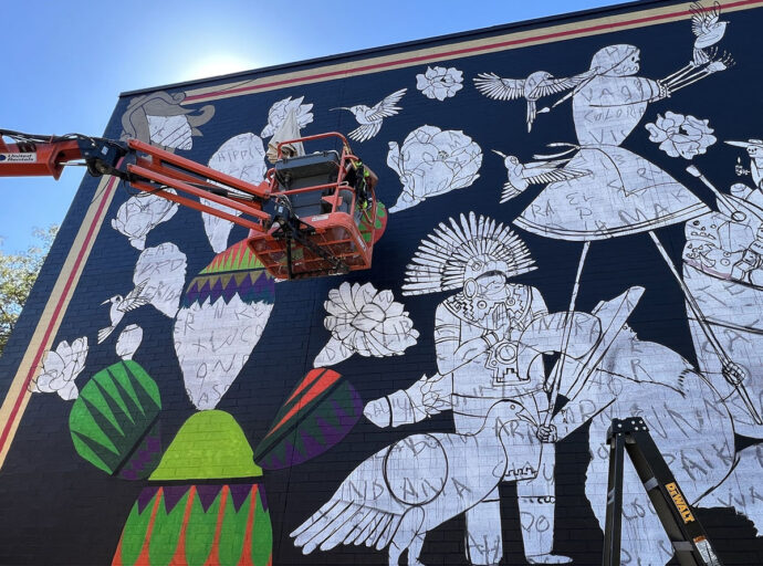 Guerra se destaca en el mundo del arte callejero y muralismo. Originario de Tlaxcala, México, comenzó su carrera como grafitero antes de explorar diferentes estilos artísticos y culturas en sus viajes por casi 30 países. “Para los miembros de la comunidad que tienen raíces mexicanas, el mural sirve como un recordatorio de su identidad y un símbolo de orgullo cultural. Para otros, es una oportunidad de aprender y apreciar una cultura diferente”, dijo el artista.