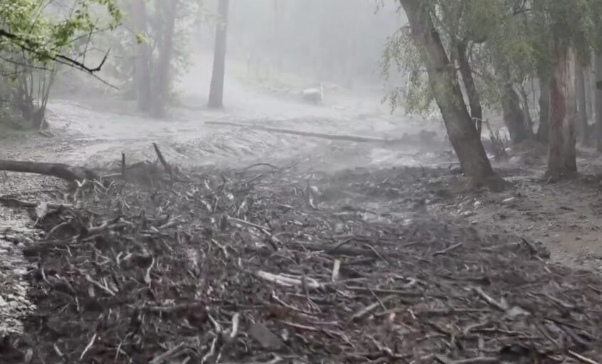 Estas lluvias cayeron en un área afectada por históricos incendios forestales en 2024, cuando el fuego dejó dos muertos y destruyó más de 1.400 viviendas y estructuras. Videos en redes sociales muestran cómo, en cuestión de minutos, el agua del río Ruidoso creció, arrastró casas enteras y destruyó puentes. Esas corrientes del río arrastraban los restos de los incendios y la tierra seca convertida en fango.