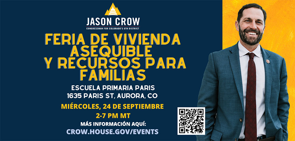 El congresista Jason Crow, representante del distrito 6 de Colorado, invita a la comunidad a participar en la Feria de Vivienda Asequible y Recursos para Familias, un evento diseñado para acercar a las personas a soluciones concretas sobre uno de los temas que más preocupan en Aurora. Se refieren al acceso a una vivienda digna y a programas de apoyo familiar.