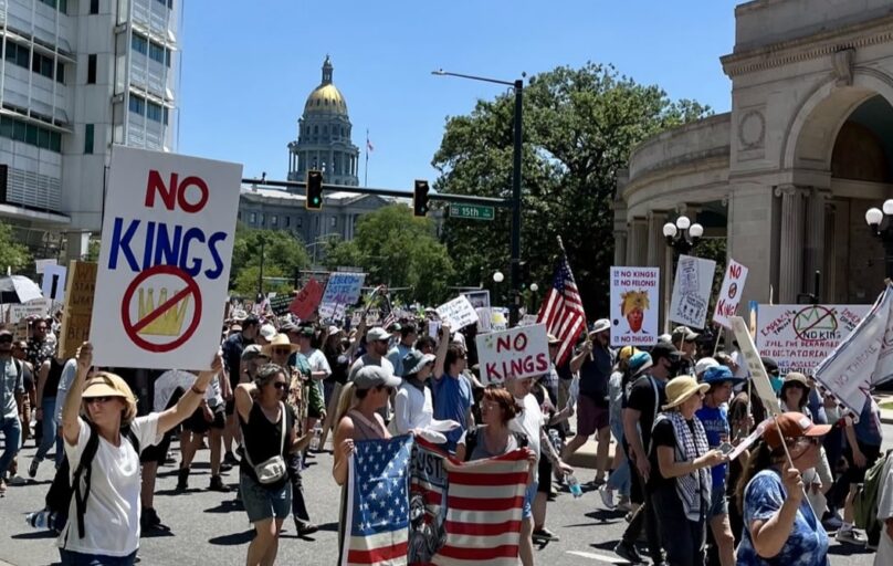 “No Kings Day” nació hace tres años y se celebra cada 14 de junio, cumpleaños de Trump, “para recordar que Estados Unidos rechaza cualquier intento de gobernar por decreto o silenciar la disidencia” dicen sus promotores. “La edición de 2025 en Colorado destacó por su organización, la presencia de voluntarios registrando votantes y la diversidad de comunidades presentes que marcharon hombro con hombro” dijo el comunicado de los organizadores.