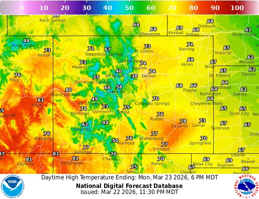 Colorado experimentará este lunes 23 de marzo una jornada marcada por temperaturas agradables en gran parte del estado, de acuerdo con los pronósticos del National Weather Service. El clima reflejará un patrón típico de la temporada primaveral, con una clara diferencia térmica entre las zonas bajas y las regiones montañosas.