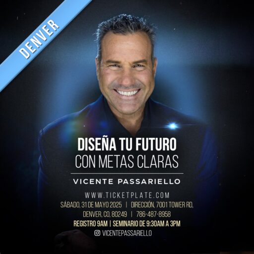 “Si respiras y quieres alcanzar cosas en 2025, este evento es para ti”. Así lo resume Vicente Passariello, reconocido coach motivacional y autor del libro Sin Máscara, quien visitará Denver el próximo sábado 31 de mayo para presentar su seminario transformador “Diseña tu Futuro con Metas Claras”. El evento, dirigido a jóvenes, adultos, emprendedores y profesionales, está diseñado para proporcionar herramientas concretas que permitan establecer objetivos claros y alcanzables.